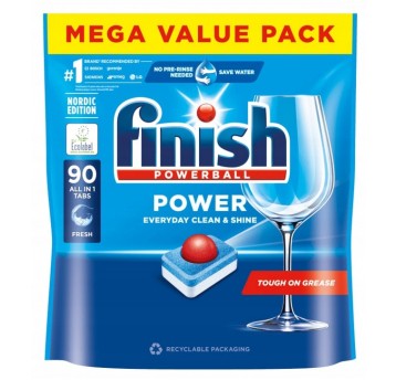 Finish Power All in 1 Fresh to wielofunkcyjne tabletki do zmywarki, które skutecznie usuwają tłuszcz i osady, nabłyszczają naczynia oraz chronią zmywarkę przed kamieniem, działając nawet w niskiej temperaturze.