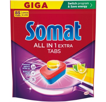 Tabletki do zmywarki Somat All in 1 Extra Lemon w opakowaniu 44 sztuki skutecznie usuwają tłuszcz oraz plamy po herbacie i kawie. Szybko się rozpuszczają, nie zostawiają osadów i nadają naczyniom wyjątkowy połysk.