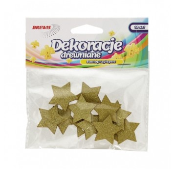 Zestaw 12 złotych, brokatowych gwiazdek samoprzylepnych Brewis z drewna to elegancka dekoracja do kartek, prezentów i aranżacji świątecznych. Idealne do projektów DIY i kreatywnych kompozycji.