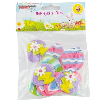 Naklejki z filcu Brewis PVE15 w kształcie pisanek, 12 sztuk w pastelowych kolorach. Doskonałe do kartek, scrapbookingu i dekoracji wielkanocnych, łatwe w użyciu, dodają radosnego charakteru każdemu projektowi.