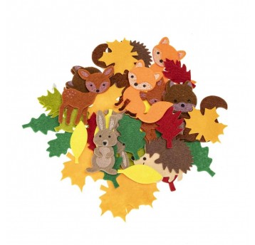 Naklejki z filcu Brewis FV07 Jesień – zestaw ok. 35 sztuk w kształcie listków i zwierzątek. Samoprzylepne, kolorowe i trwałe, idealne do scrapbookingu, kartek i dekoracji w jesiennym klimacie.