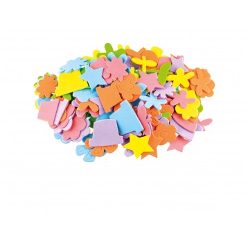 Naklejki piankowe Brewis PVC15 – zestaw 72 sztuk kwiatków i dekoracyjnych kształtów w różnych rozmiarach. Samoprzylepne, kolorowe i lekkie, idealne do zajęć plastycznych i projektów DIY.