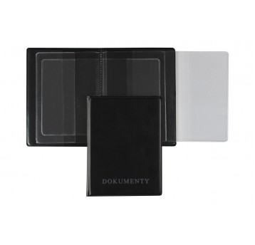 Czarna okładka na dokumenty Biurfol wykonana z folii PVC i wzmocniona tekturą umożliwia bezpieczne przechowywanie dowodu rejestracyjnego, prawa jazdy i dokumentów osobistych w jednym miejscu.