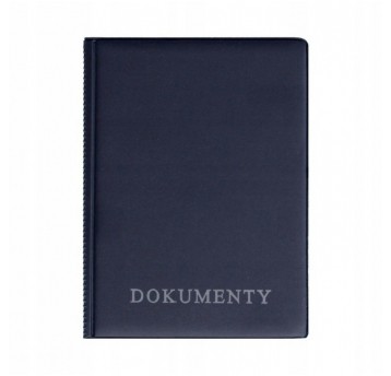 Granatowa okładka Biurfol Premium z PVC, usztywniona tekturą, z 4 kieszonkami i 2 kieszeniami. Kieszonkowy format i poziomy układ zapewniają wygodną organizację dokumentów w pracy i podróży.