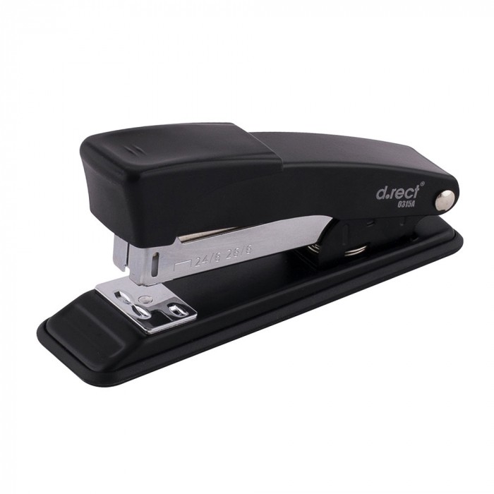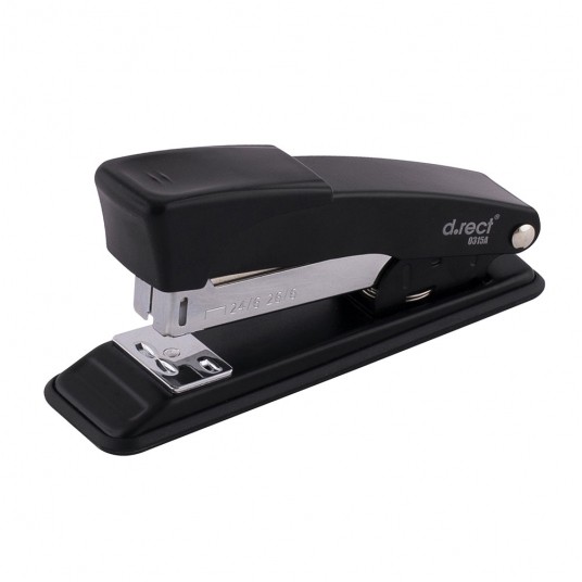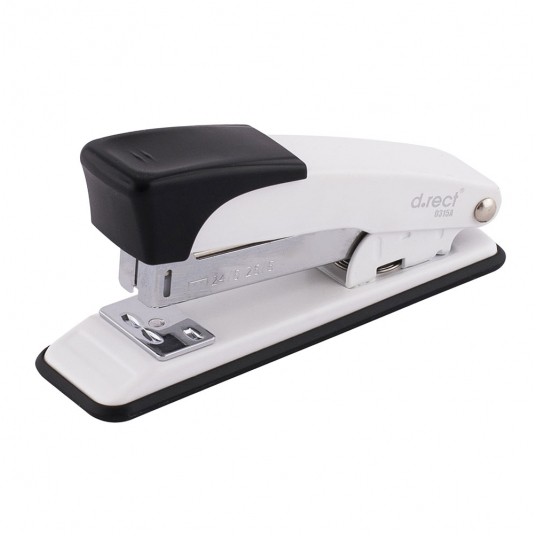 Funkcjonalny zszywacz biurowy. Pomocny w codziennej pracy, niezastąpiony w porządkowaniu i segregowaniu dokumentów. Metalowa obudowa z plastikowymi antypoślizgowymi nakładkami na ramieniu i na podstawie.