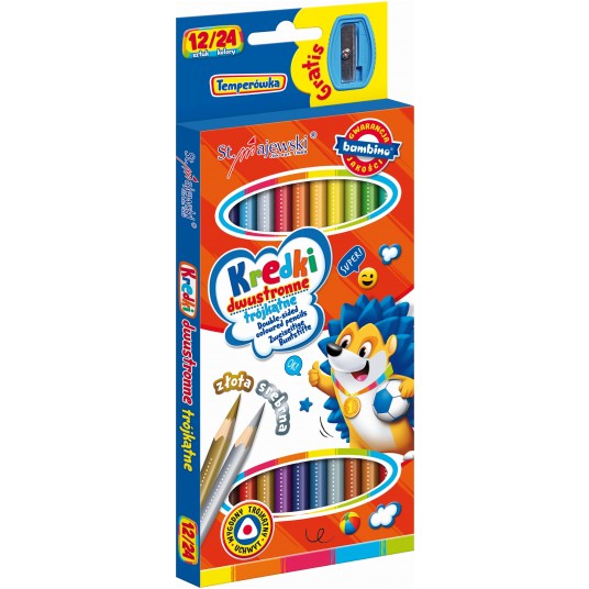 Kredki szkolne trójkątne dwustronne 12/24 kolory +