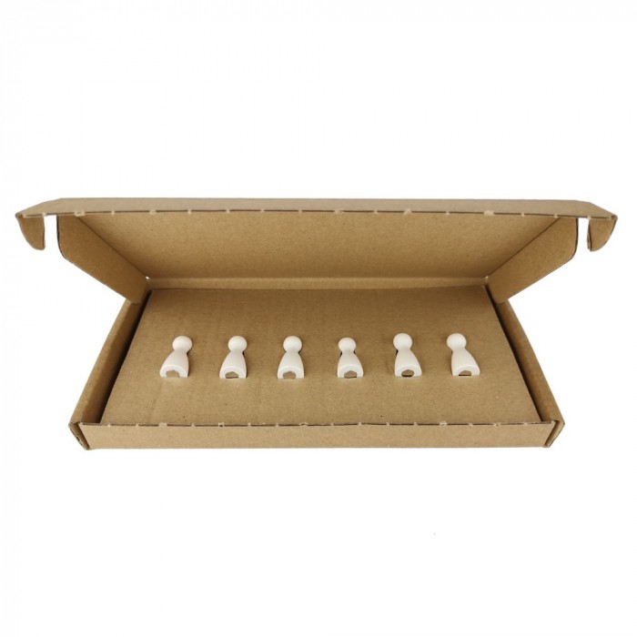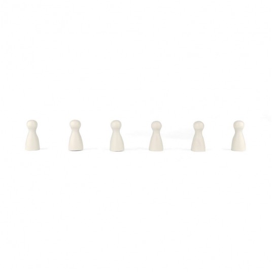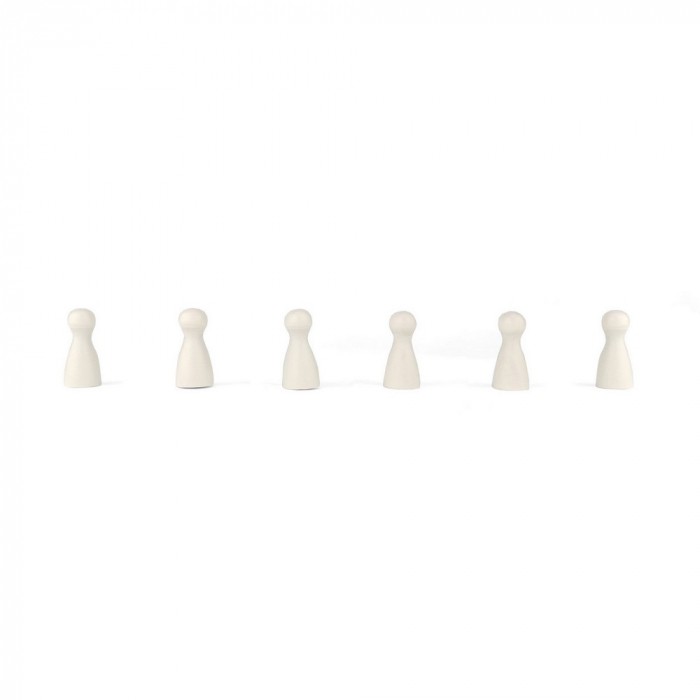 Komplet 6 sztuk magnesów z drewna w kolorze białym, w eleganckim ekologicznym opakowaniu.