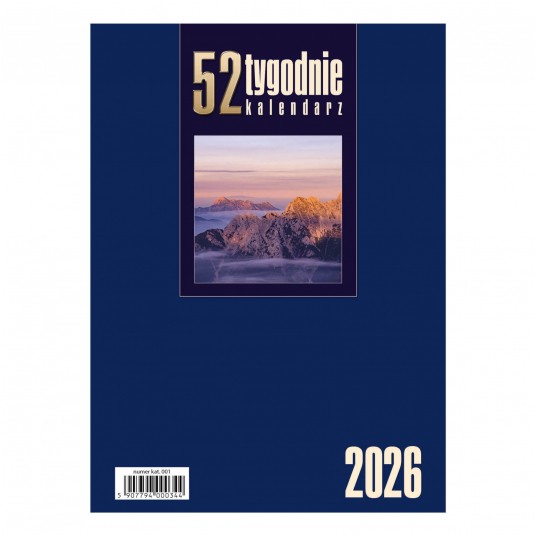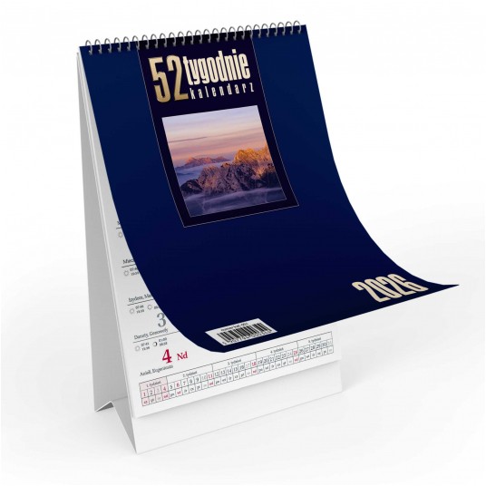 Kalendarz biurkowy, stojący, w układzie tygodniowym.