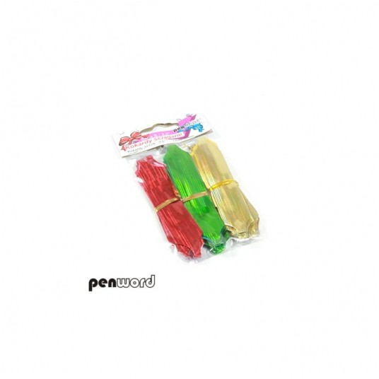 W opakowaniu znajdziemy 3 kokardki do zawiązania - zieloną, żółtą i niebieską.