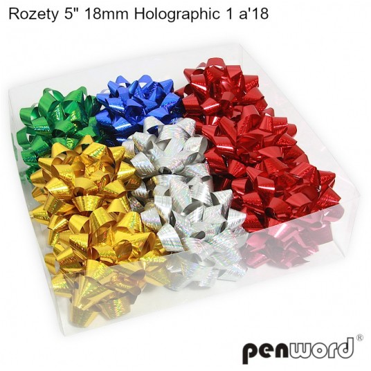 Zestaw hologramowych wstążek-rozet, które stanowią piękną ozdobę prezentu.