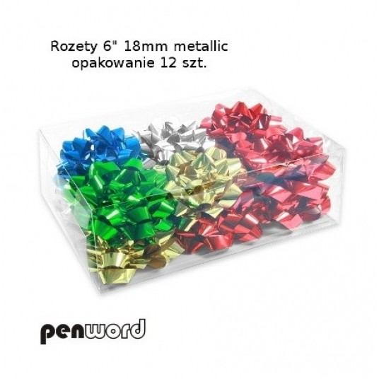 Zestaw metalicznych wstążek-rozet, które stanowią piękną ozdobę prezentu.