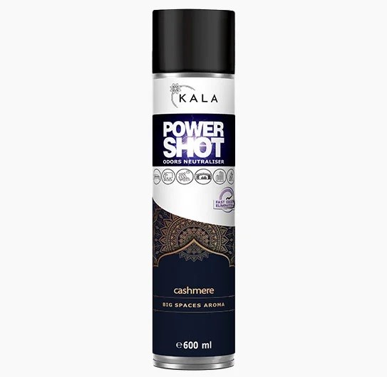 Neutralizator nieprzyjemnych zapachów, aromatyzer, odświeżacz Kala POWER SHOT zapach cashmere 600 ml to prestiżowy zapach tajemniczości orientu, w którego składzie odnajdziemy orientalną wanilię, a także nuty żywiczne, drzewne, ambrowe.