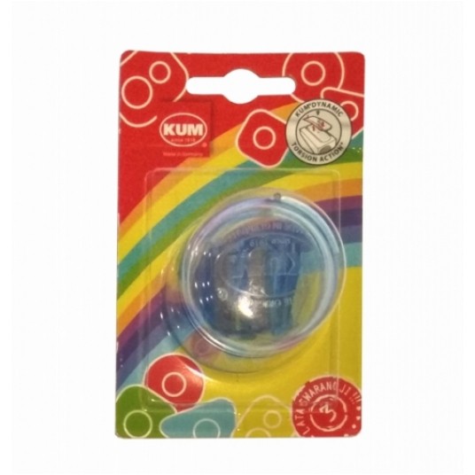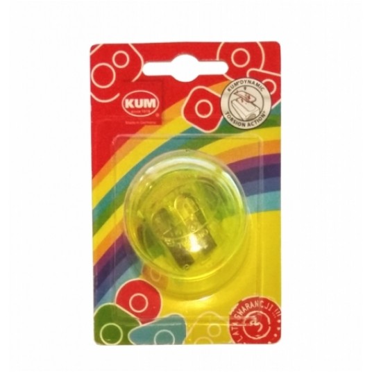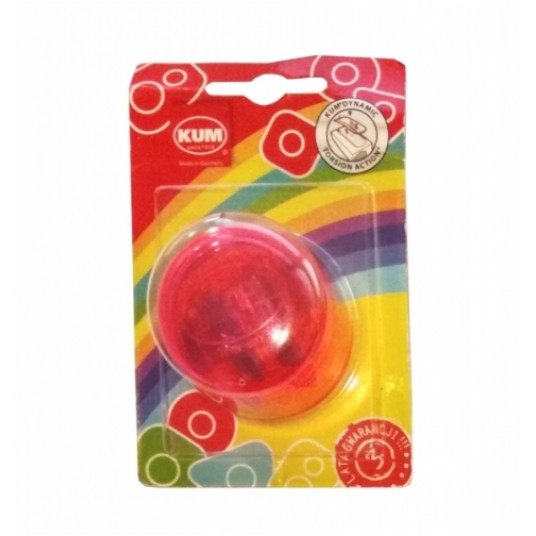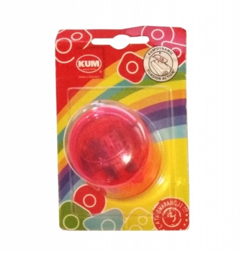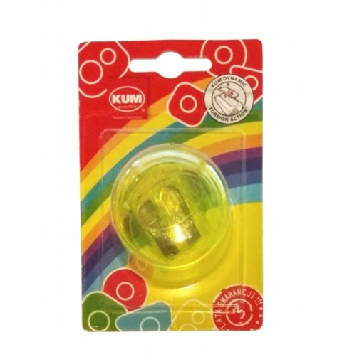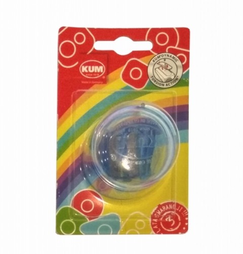 Temperówka plastikowa KUM z pojemnikiem na ostrużyny w kształcie kopuły.