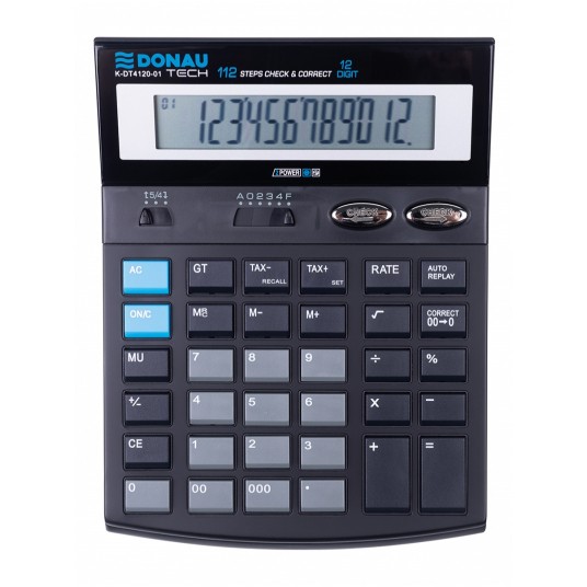 112 funkcji m.in.: funkcja pierwiastka kwadratowego oraz obliczania procentów, funkcja zmiany znaku, obliczanie marży MU, obliczenia podatkowe TAX=+ TAX-, funkcja cofania, sprawdź i popraw CHECK & CORRECT, podwójne zero, potrójne zero, pamięć, suma całkowita GT, ustawienie dziesiętne, zaokrąglanie wyniku