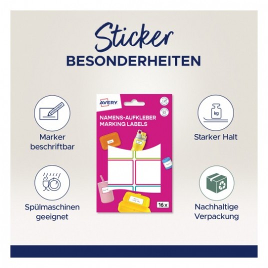 Naklejki do oznaczania; 48 x 34 mm, 16 naklejek, kolorowe ramki