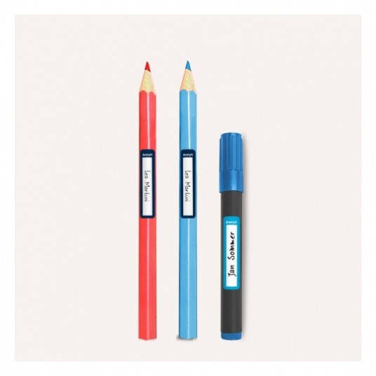 Przydatne do imiennego oznaczania długopisów, pędzli i innych przyborów szkolnych oraz zabawek w przedszkolach i szkołach