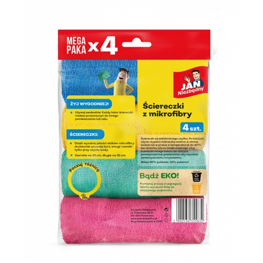 Zestaw czterech kolorowych ścierek, każdą można przeznaczyć do innego pomieszczenia lub celu