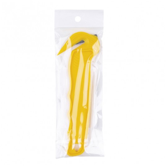 DONAU SAFETY żółty to nóż bezpieczny z ukrytym ostrzem, zaprojektowany z myślą o maksymalnej ochronie użytkownika oraz bezpieczeństwie towaru. Dzięki swojej budowie skutecznie eliminuje ryzyko przypadkowego skaleczenia, chroniąc jednocześnie zawartość paczek. Ukryte, stalowe ostrze zapewnia precyzyjne cięcie folii stretch, plastikowych opasek, taśm, sznurków i torebek bez odsłaniania ostrza, co czyni go idealnym rozwiązaniem w środowisku pracy o wysokich wymaganiach BHP.