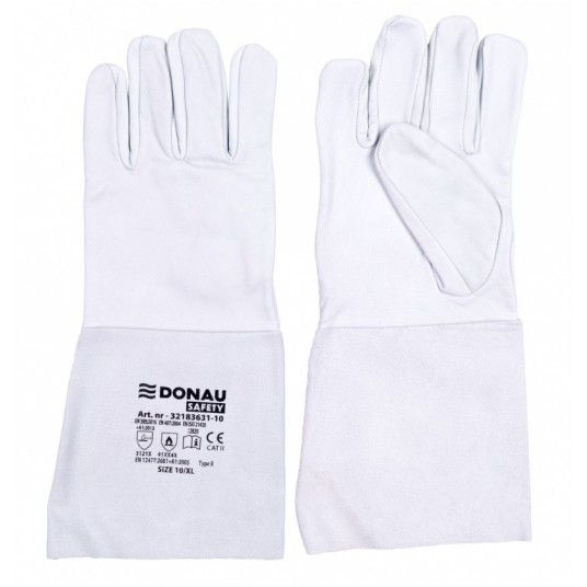 Rękawice DONAU SAFETY TIG XL z miękkiej skóry koziej i długim mankietem bydlęcym oferują precyzję, wygodę i ochronę termiczną — stworzone z myślą o spawaniu metodą TIG.
