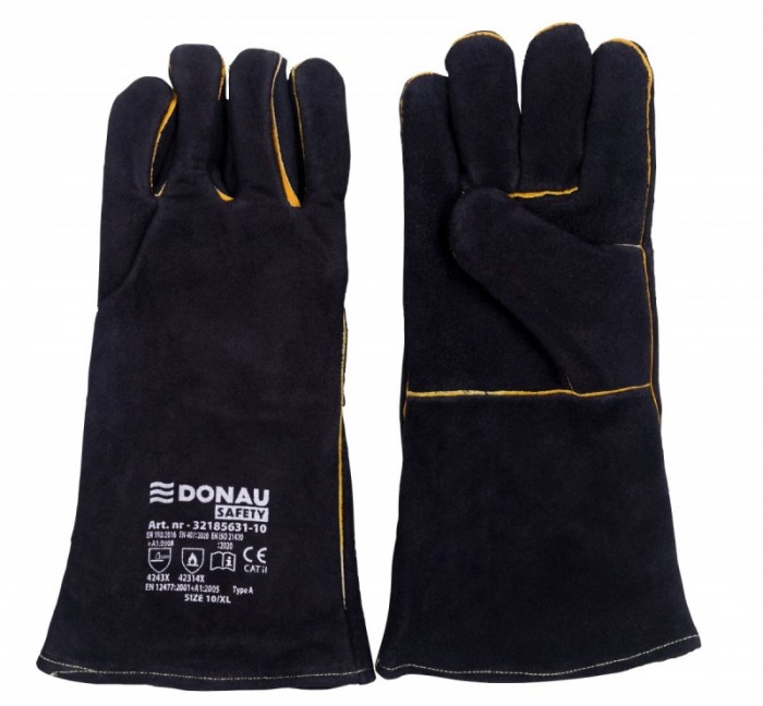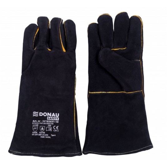 Rękawice spawalnicze DONAU SAFETY MIG XL wykonane z wytrzymałej skóry bydlęcej i podszyte bawełną to niezawodna ochrona przed ciepłem, iskrą i uszkodzeniami mechanicznymi.