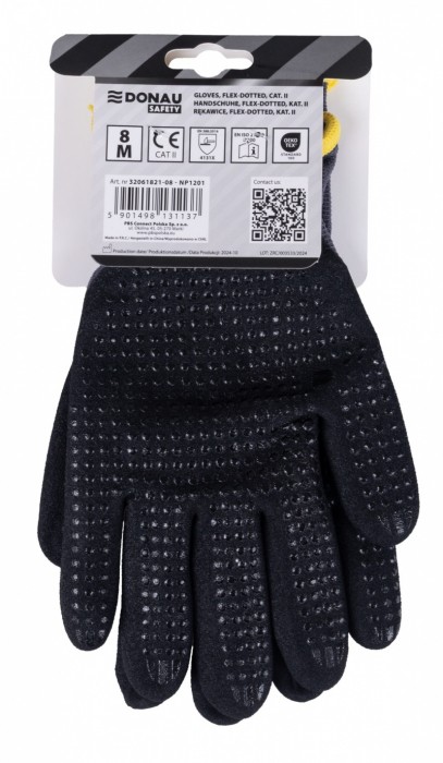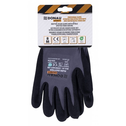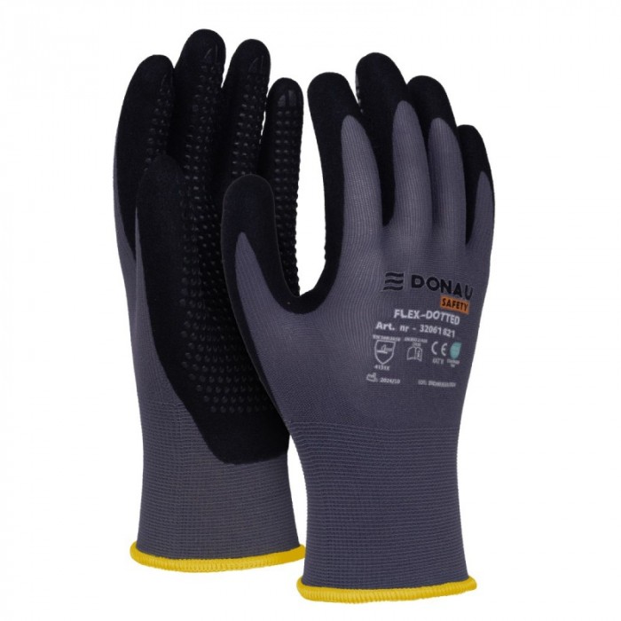 DONAU SAFETY Flex-Dotted rozm. 8 – trwałe i oddychające rękawice z nakropieniem zwiększającym przyczepność. Idealne do prac montażowych, serwisowych i ogrodowych.
