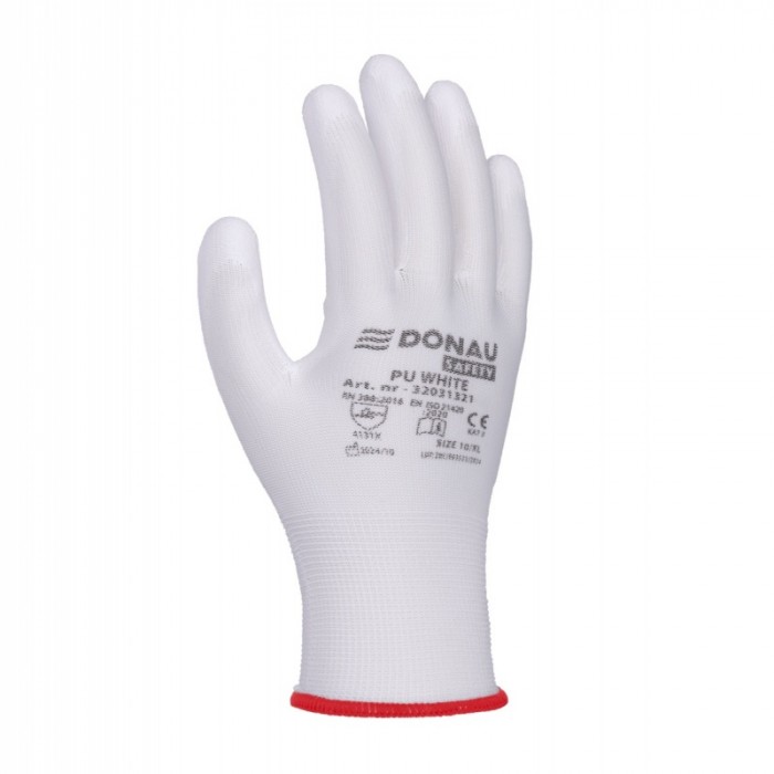 DONAU SAFETY PU White rozm. 6 – lekkie, elastyczne rękawice do precyzyjnych prac w czystym środowisku. Idealne dla drobniejszych dłoni. Odporne na ścieranie i niebrudzące.