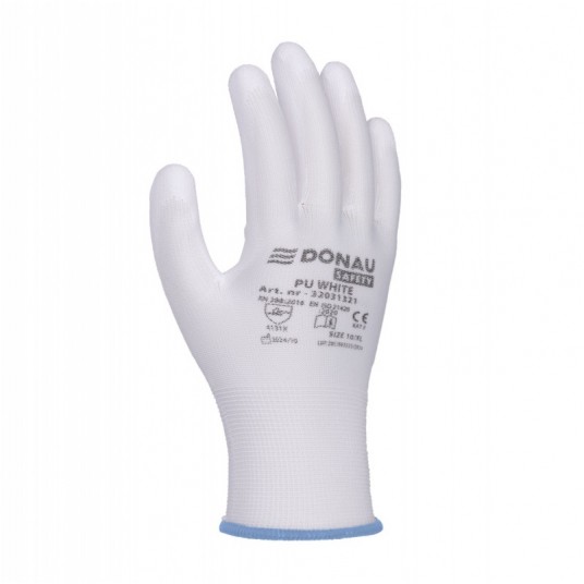 Rękawice DONAU SAFETY PU White rozm. 9 – czyste, lekkie i precyzyjne. Idealne do montażu, elektrotechniki, serwisu i prac malarskich. Świetne dopasowanie i odporność na ścieranie.
