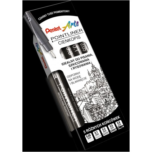 Zestaw cienkopisów Pentel Pointliner S20P to profesjonalne narzędzie stworzone z myślą o użytkownikach, którzy oczekują absolutnej kontroli nad linią oraz najwyższej jakości zapisu. W komplecie znajduje się 5 cienkopisów z czarnym tuszem pigmentowym, odpornym na wodę i blaknięcie, spełniającym normę ISO 14145-2:1998. To idealne rozwiązanie do precyzyjnego rysowania, szkicowania, pisania i tworzenia ilustracji, w których liczy się trwałość oraz wyrazistość każdego detalu.⭐️