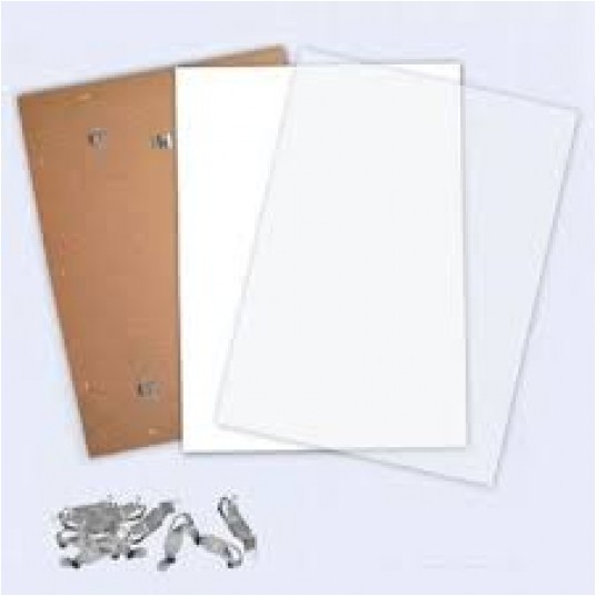 · Tył stanowi płyta HDF; specjalne metalowe klipsy łączą płytę z pleksi