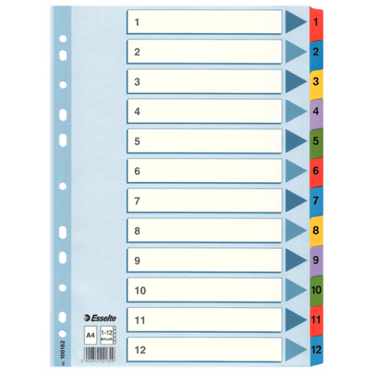 12 zadrukowanych numerycznie indeksów (1-12) do łatwego sortowania
