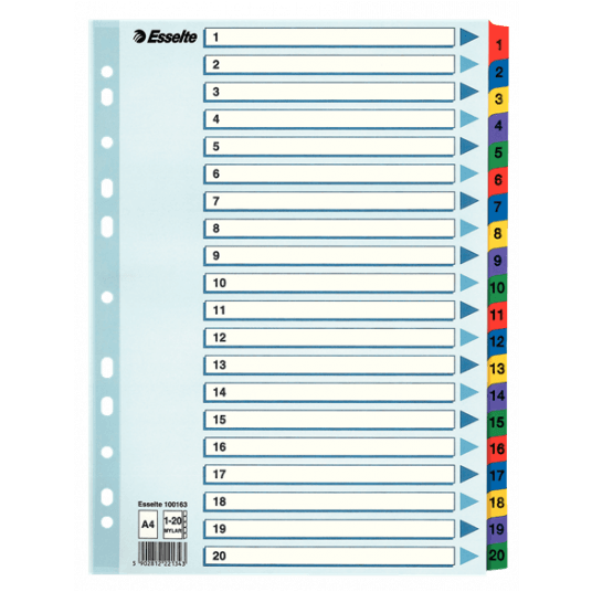 20 zadrukowanych numerycznie indeksów (1-20) do łatwego sortowania