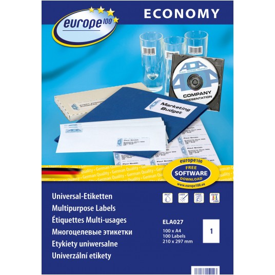 Zadowalające wyniki podczas całego procesu druku. Bezpieczne drukowanie bez zacięć. Brzegi arkuszy nie są pokryte klejem co gwarantuje płynny proces druku i zabezpiecza drukarkę przed uszkodzeniem przez klej. Wydruk jest ostry i wyraźny a etykiety pewnie pozostają przyklejone do wszystkich standardowych powierzchni. Można drukować we wszystkich typowych drukarkach biurowych laserowych i atramentowych.