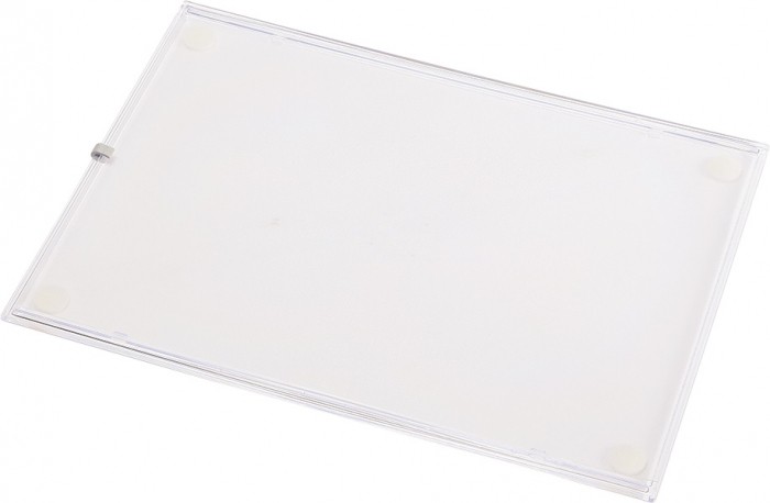 Małe zaczepy wokół obwodu przytrzymują kartkę i folię