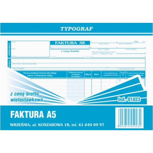 Druk Faktura Typograf A5 Brutto Pozioma Wielokopia