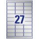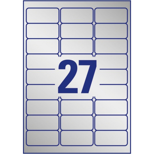 Etykiety samoprzylepne wykonane ze srebrnego poliestru.