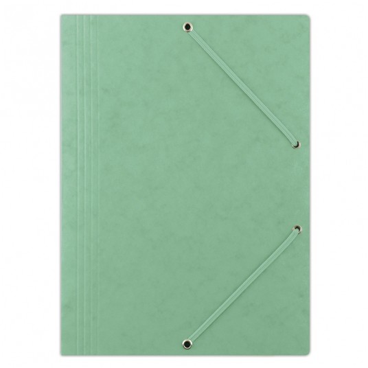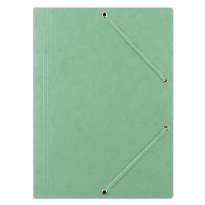 Zamykana za pomocą 2 płaskich, narożnych gumek w kolorze teczki