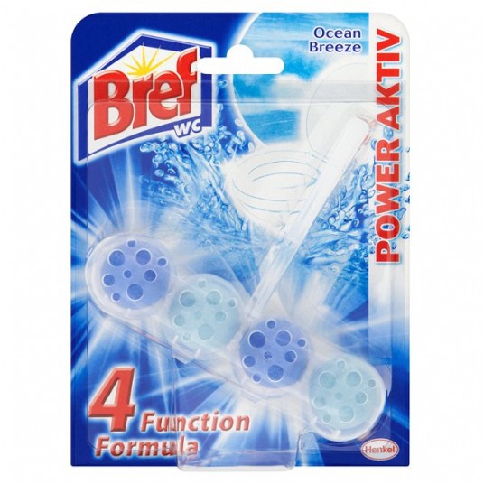 Bref Power Aktiv ma 4-funkcyjną formułę, zapewniającą higienę, ochronę przed osadzaniem się kamienia, świeżość oraz czyszczącą pianę. Kompleksowe działanie sprawia, że toaleta jest higienicznie czysta i świeżo pachnie.