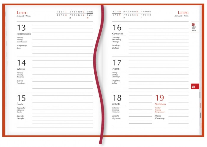 Oprawa: skóropodobna Vivella lub okładka barwna foliowana, jedna tasiemka.
