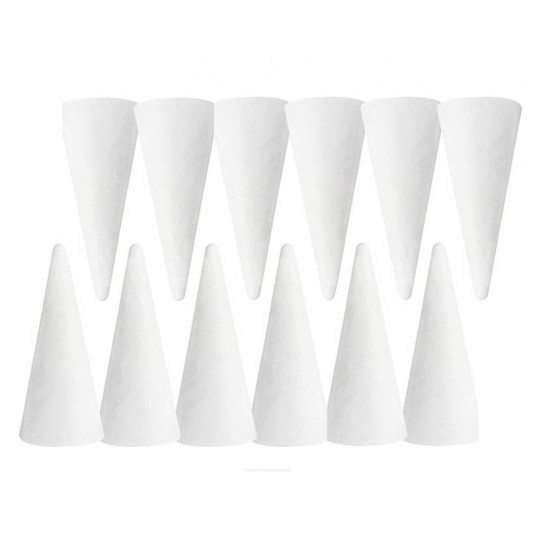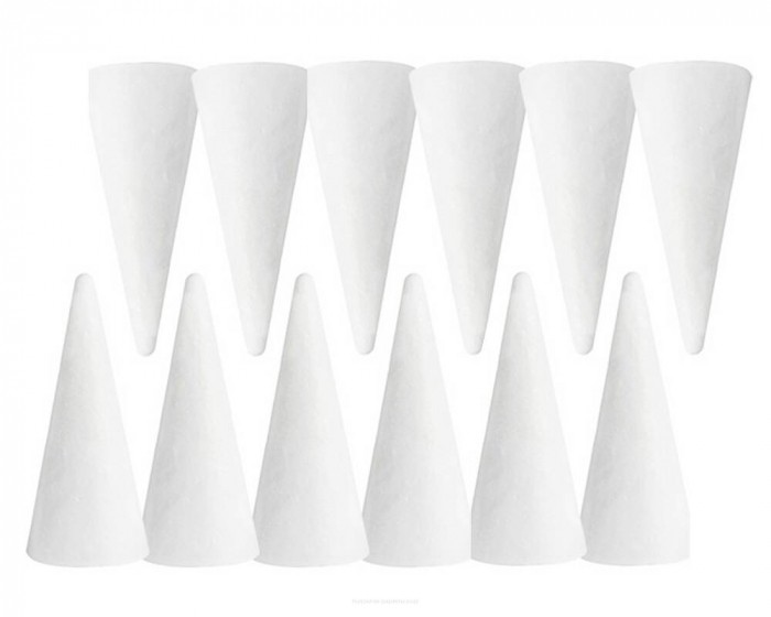 Stożki styropianowe świetnie nadaje się do malowania oraz ozdabiania na wiele sposobów, np. wstążkami, cekinami, filcem, koralikami