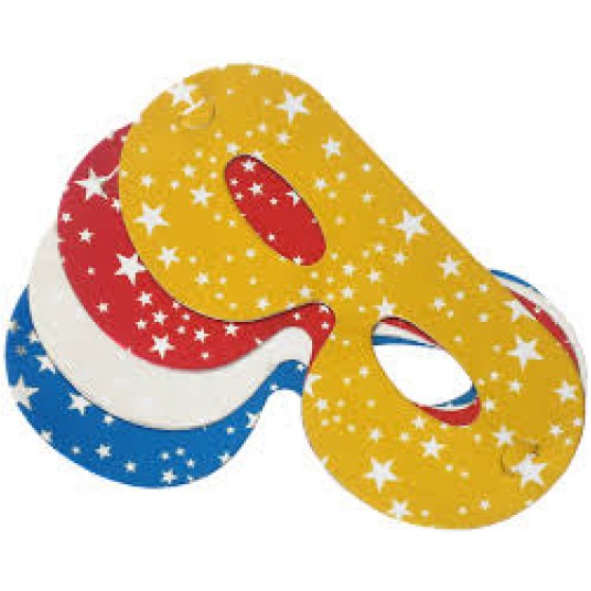 Niedrogie kolorowe maski karnawałowe na bal, imprezę, przyjęcia okolicznościowe. Cena dotyczy 3 sztuk o długości około 16 cm. W opakowaniu znajdują się losowe wzory masek.