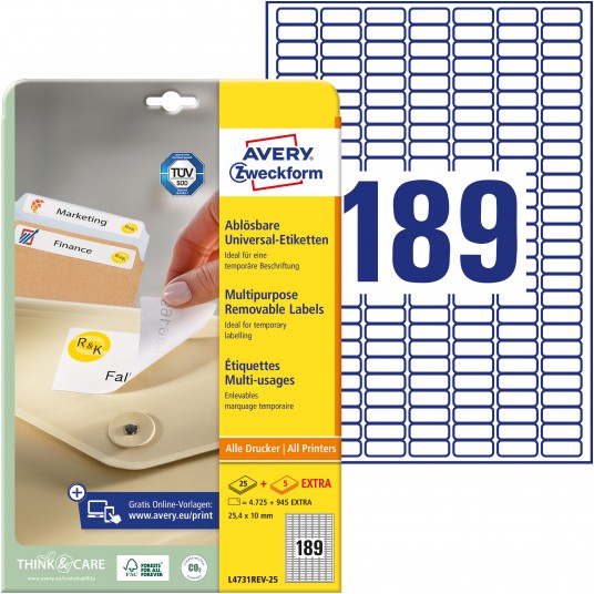 Łatwousuwalne etykiety papierowe idealne do tymczasowego oznaczania, np. przy zmianach treści dokumentów, segregatorów, pojemników.