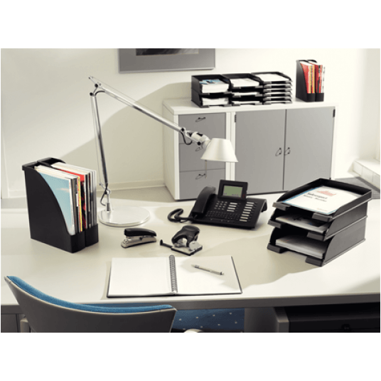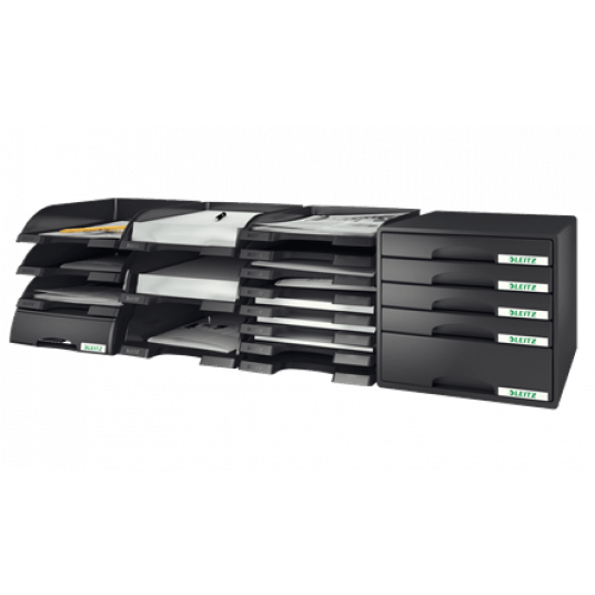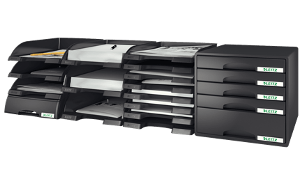Elastyczne zastosowania na biurku w kombinacji z półkami Leitz Plus Standard, Slim i pojemnikami z szufladami