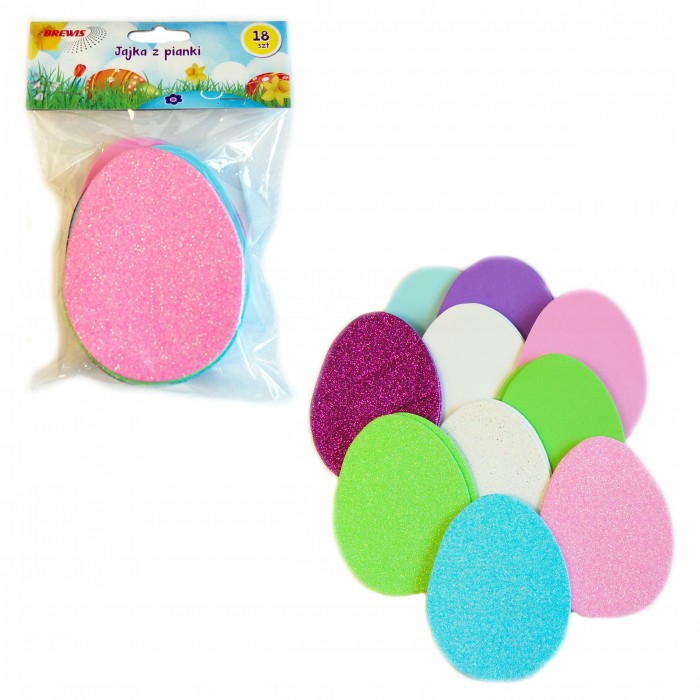 Zestaw dużych jajek z pianki PVC w sześciu kolorach: biały, żółty, różowy, fioletowy, jasny niebieski, niebieski.