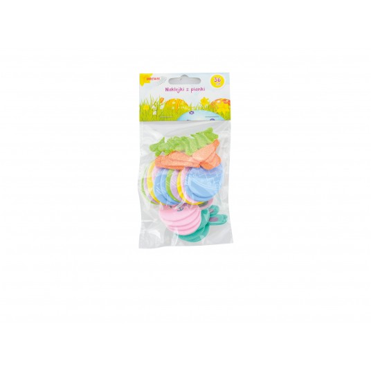 Zestaw naklejek wielkanocnych o przeróżnych kształtach i wielkościach. Ożywią i ozdobią każde miejsce w którym się znajdą, wyzwalając w dzieciach aktywność twórczą. Świetna zabawa przy tworzeniu kreatywnych prac dekoratorskich. Opakowanie zawiera 36 sztuk.