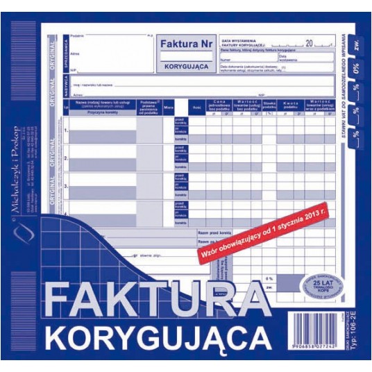 Druk Faktura VAT Korygująca 1+1 2/3 A4 MiP