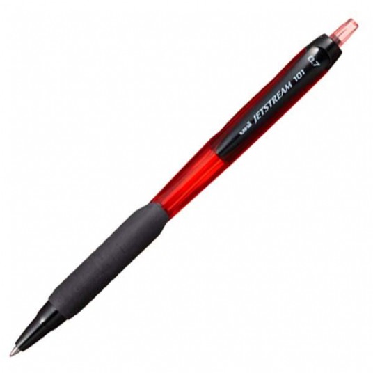 Długopis Jetstream wyposażony jest w plastikową, transparentną obudowę w kolorze tuszu z gumowym uchwytem, który dopasowuje się do dłoni i pozwala pisać przez dłuższy czas bez wysiłku