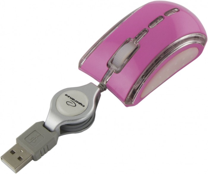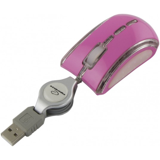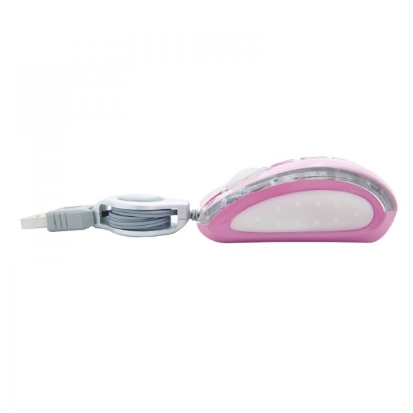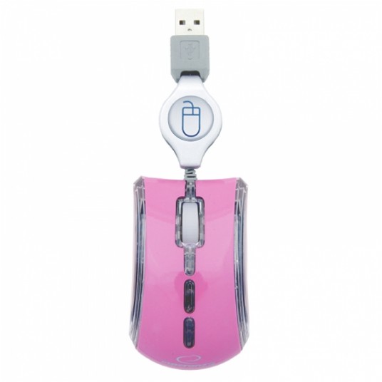 Myszka optyczna mini do komputerów i notebooków. Fantastycznie kolorowa, rozświetla miejsce pracy barwami tęczy nadając mu niepowtarzalny charakter. Zwijany automatycznie kabel ułatwia transport i przechowywanie myszki.