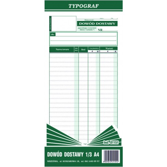 Druk Dowód Dostawy Typograf Wielokopia 1/3 A4