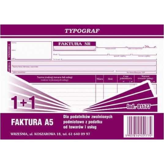 Druk Faktura dla podatników zwolnionych podmiotowo z podatku od towarów i usług