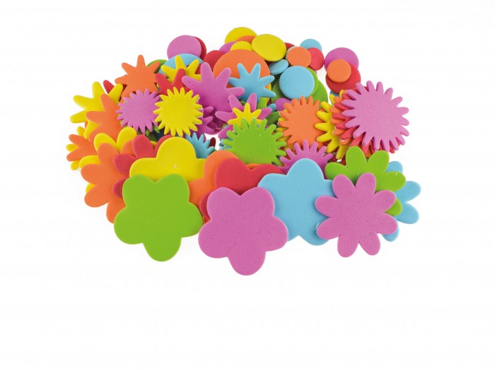 Zestaw naklejek z pianki w kilku kolorach i rozmiarach znakomicie wyzwalają dziecięcą aktywność twórczą wszelkiego rodzaju